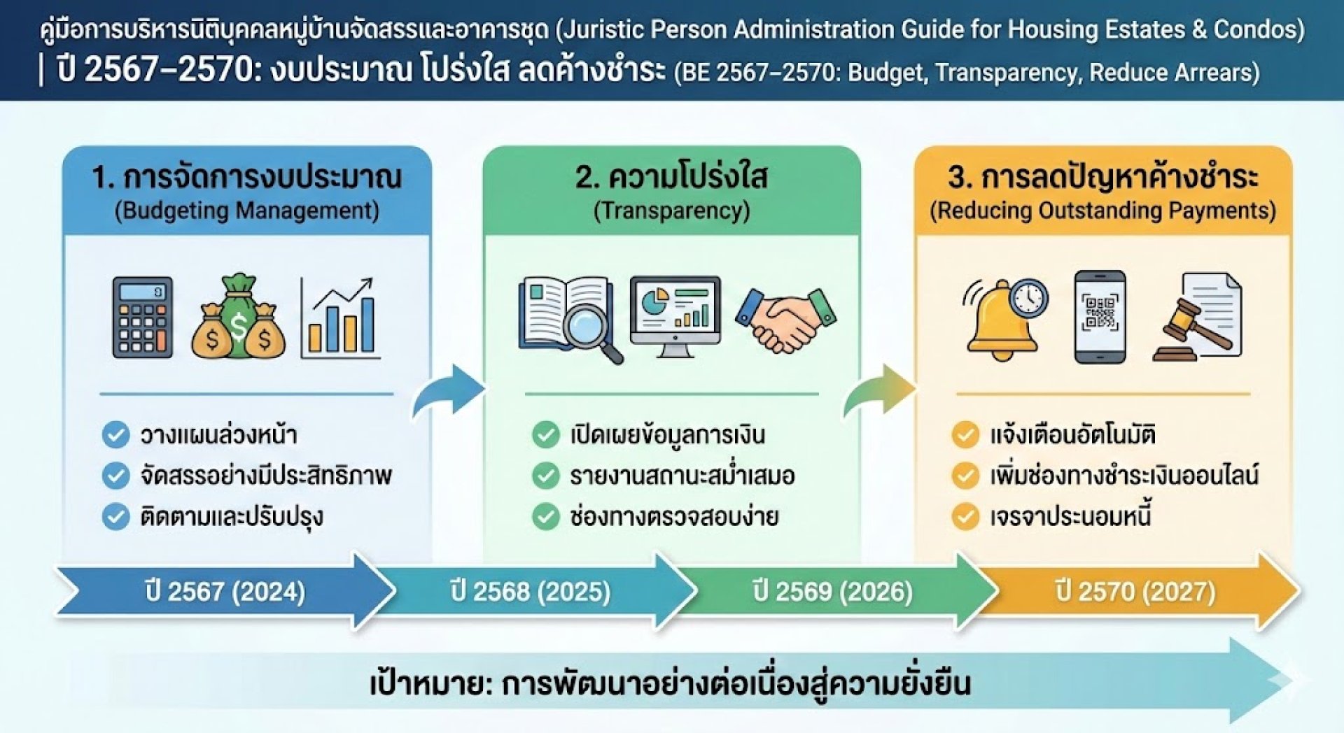 การบริหารนิติบุคคลหมู่บ้านจัดสรรและอาคารชุด: คู่มือ เพื่อการจัดการงบประมาณ ความโปร่งใส และการลดปัญหาค้างชำระ (ปี 2564-2567)