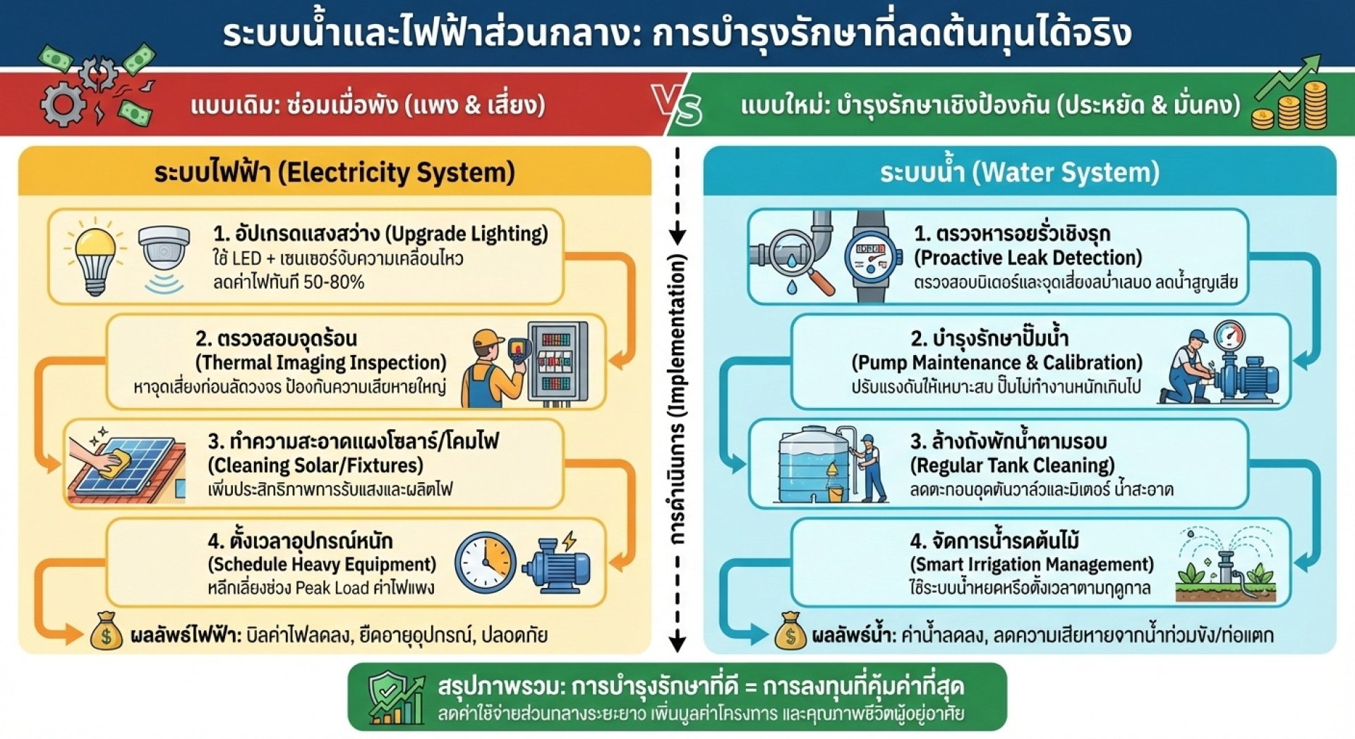 ระบบน้ำและไฟฟ้าส่วนกลาง: การบำรุงรักษาที่ลดต้นทุนได้จริง