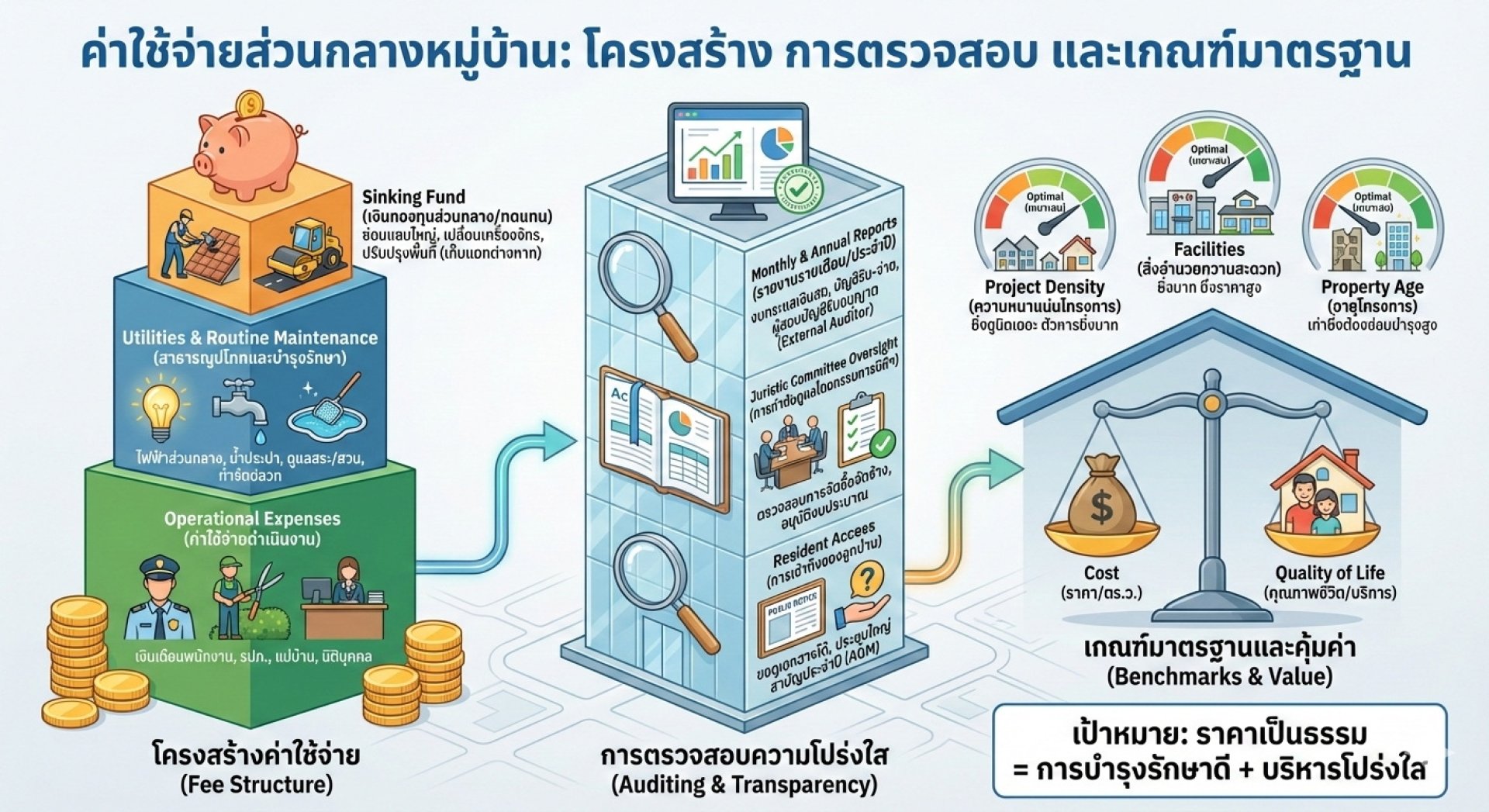 ค่าใช้จ่ายส่วนกลางหมู่บ้าน: โครงสร้าง การตรวจสอบ และเกณฑ์มาตรฐาน